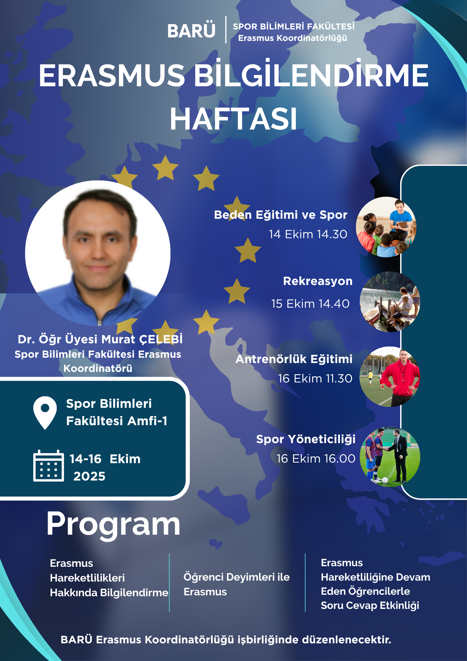 BARÜ Spor Bilimleri Fakültesi Erasmus Koordinatörlüğü tarafından düzenlenen Erasmus Bilgilendirme Haftası başlıyor!