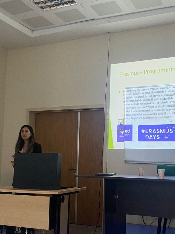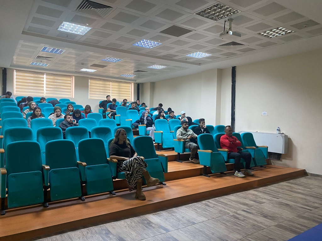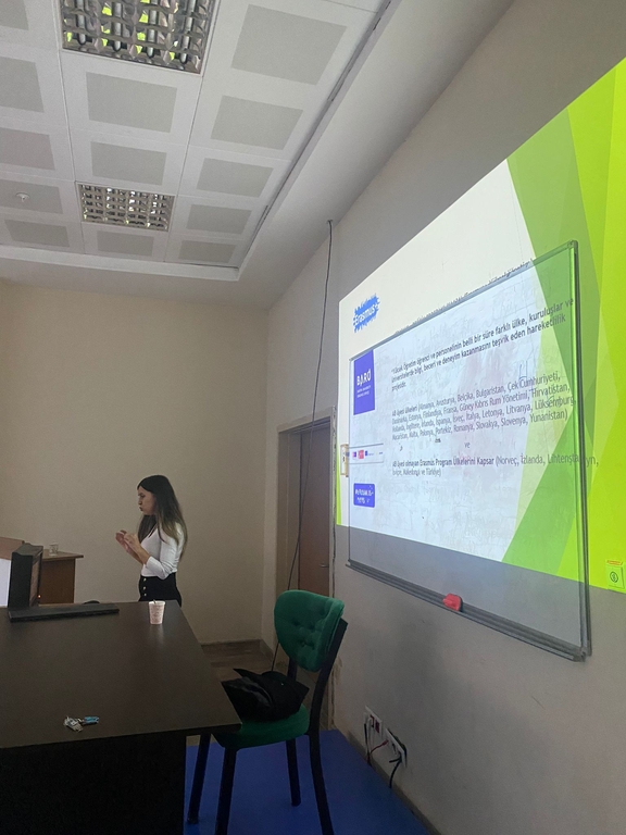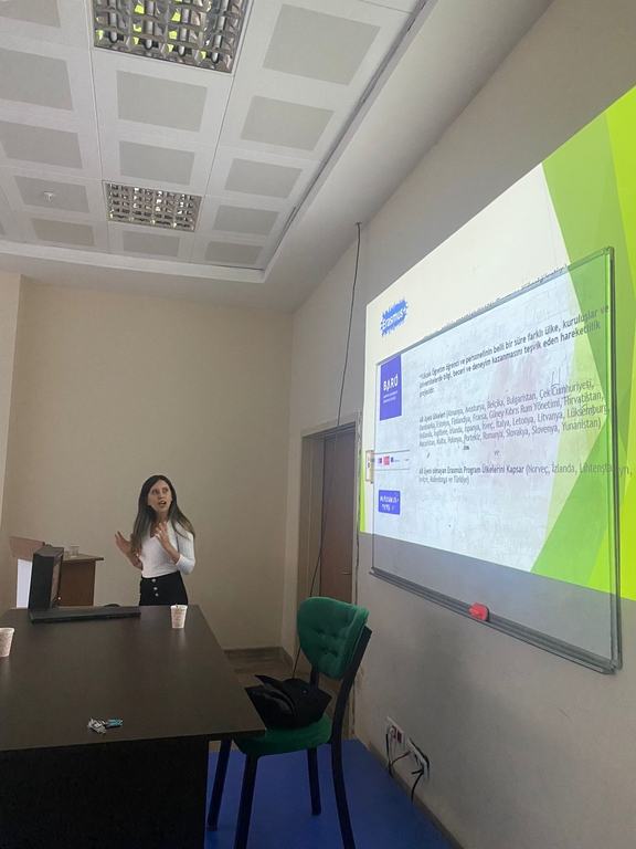 Erasmus Koordinatörlüğünden Öğr. Üyesi Kardelen Yaman, Erasmus programının sunduğu uluslararası eğitim ve kültürel değişim fırsatlarına ilişkin sunumuyla öğrencilere önemli katkılar sağladı.